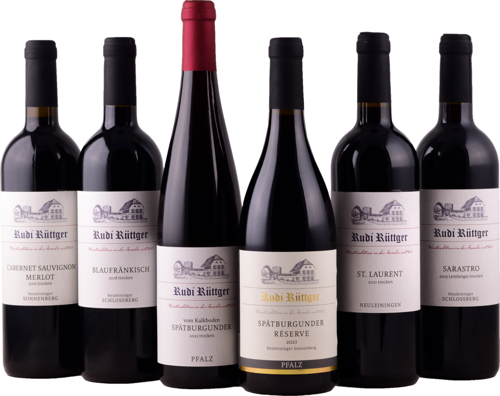 Der Spätburgunder (Pinot Noir) nimmt bei uns eine besondere Stellung ein. Auf der kalkreichen Lage Sonnenberg entfaltet er, ganz wie in seiner burgundischen Heimat, seinen charaktervollen, eigenständigen Stil. Aus den besten Trauben entstehen zudem unsere lange gereiften Spätburgunder Réserve, Blaufränkisch und die Cuvée Cabernet Sauvignon & Merlot, welche wir in Teilen – oder ausschließlich – in Barriquefässern ausbauen.