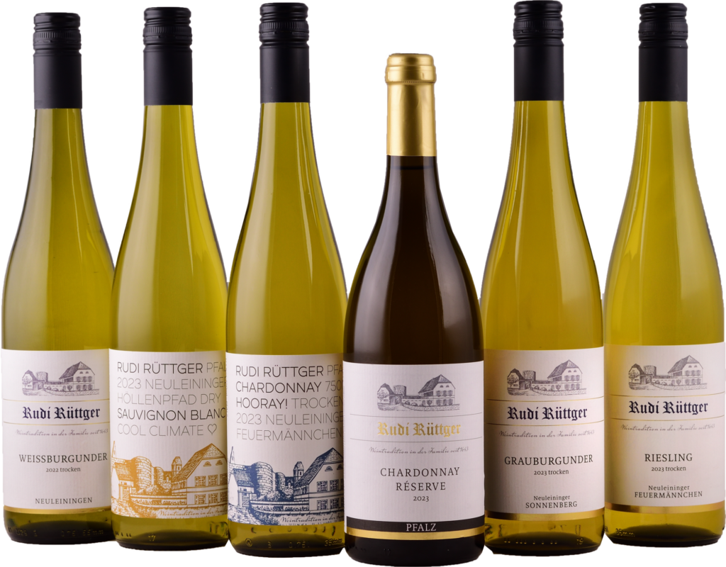 Den Auftakt bildet unser Riesling Kabinett Trocken in der Literflasche – ein sommerlich-leichter Stil mit moderatem Alkoholgehalt und viel Trinkfreude. Darüber hinaus interpretieren wir den Riesling in zahlreichen weiteren Ausprägungen: „Le Tendre“ – der Zarte – steht für unseren etwas milderen Typ mit feiner, halbtrockener Restsüße und harmonischem Spiel.